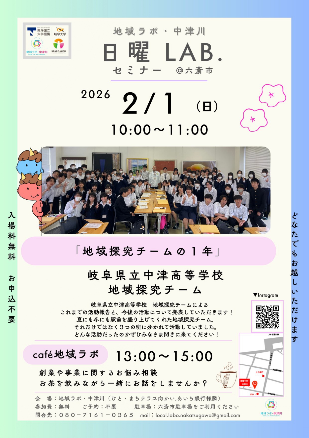 地域ラボ・中津川にて「日曜LAB.@六斎市」「café地域ラボ」を開催します。【2月1日】