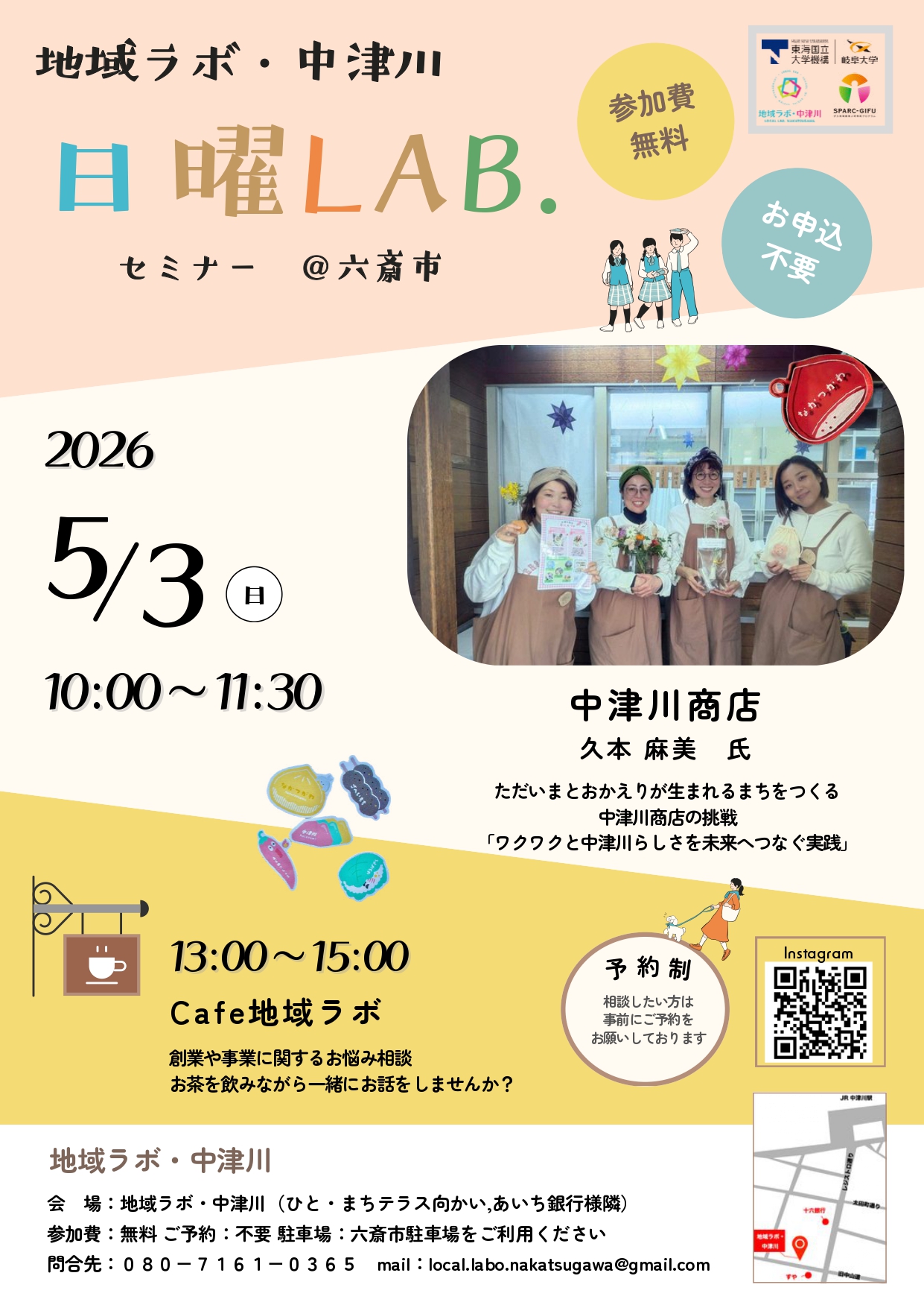 地域ラボ・中津川にて「日曜LAB.@六斎市」「café地域ラボ」を開催します。【5月3日】