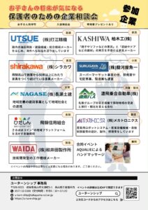 今回のイベントは、「飛騨の企業を知ろう!(事業内容・福利厚生・会社の雰囲気)」をテーマに開催されます。子どもの進路について、相談されても、自分(親)が知らなければいいアドバイスもできません。子どものために、「まずは親が知る」機会を作りました。お子さんの将来に役立つ情報や、意外と知らない企業の実情が聞ける相談会です。テーマに関心のある皆様のご参加を心からお待ちしております。
