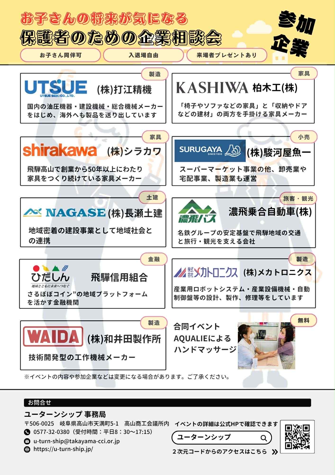 地域ラボ・高山は「ユーターンシップ2025お子さんの将来が気になる~保護者のための企業相談会~」の開催に協力します。【12月6日】