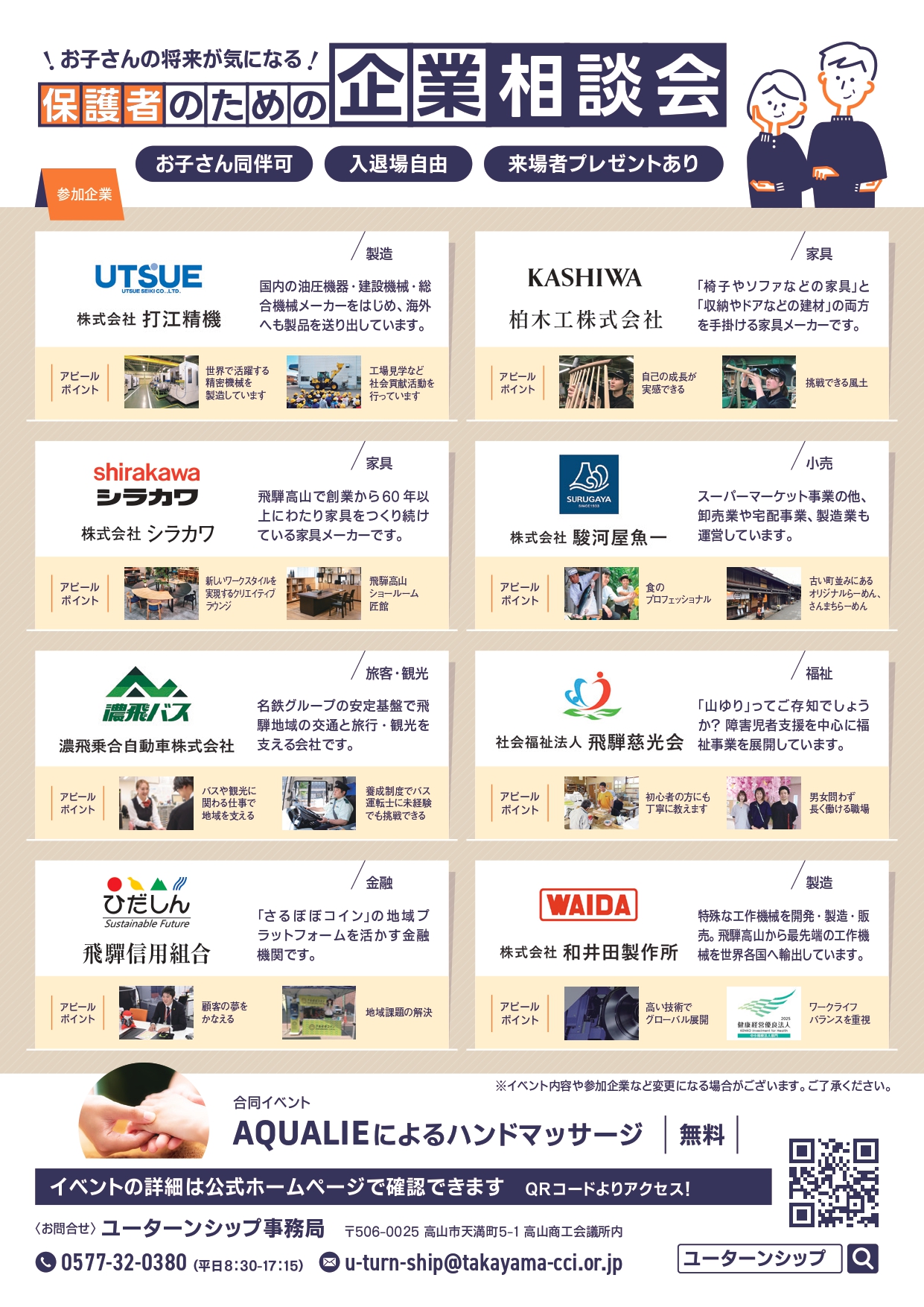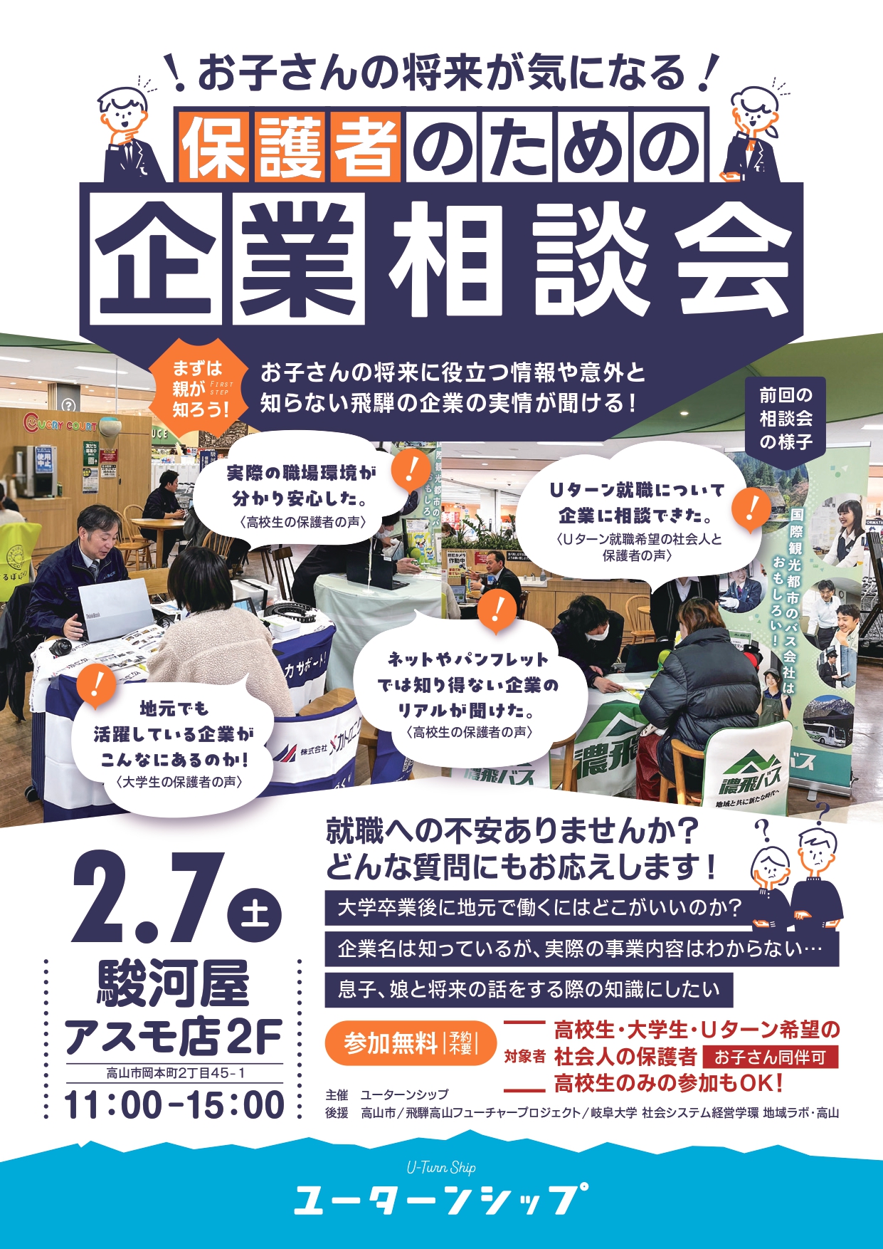 地域ラボ・高山は、令和8年2月7日(土)、ユーターンシップ主催の『お子さんの将来が気になる~保護者のための企業相談会~』の開催に協力します。