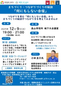 地域ラボ・高山は「まちづくり・つながりづくりの秘訣~何にもしない合宿~」を開催します【12月9日】