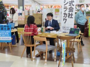 「子どもから進路について相談されたときに、親が知らなければ良いアドバイスができない!」という課題を踏まえ、まずは親御さんに知っていただこうというコンセプトで今回の相談会が開催されました。飛騨地区を代表する9社が参加し、製造業から小売業、金融、観光、土木まで幅広い業種の企業と直接話ができる機会となりました。
