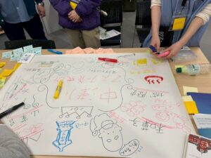 後半の共創ワークショップでは、「地域内の人と地域外の人を混ぜ合わせたら、どんなまちをデザインできるか?」をテーマにグループワークを実施しました。多様な視点が交わる中で、これまでにない発想や具体的なアイデアが生まれ、会場は大きな盛り上がりを見せました。